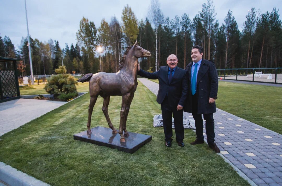 История создания памятника Будущий чемпион. Меня, как скульптора, пригласили в загородный конный клуб "Форсайт". Владелица клуба, Марина, была несколько месяцев назад в Англии, и увидела там фигуру лошади из бронзы, но в силу ряда причин приобрести ее не смогла, но мечта обладать такой скульптурой осталась.